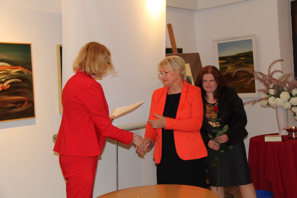 Gości oraz pracowników biblioteki powitała szefowa placówki Anna Skubisz – Szymanowska.  Dyrektor poinformowała o ostatnim sukcesie biblioteki - wyróżnienie w XIII Konkursie Izby Wydawców Prasy na Prasową Okładkę Roku GrandFront 2014 dla radomskiego Miesięcznika Prowincjonalnego za okładkę nr 1/2014, której autorem jest Stanisław Zbigniew Kamieński, a autorem typografii Aleksander Olszewski.