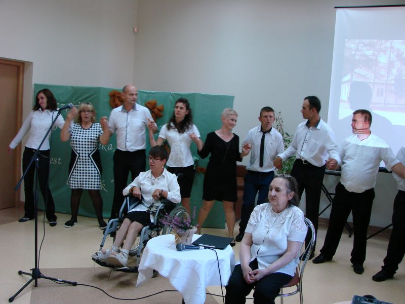 W trakcie sympatycznego spotkania o swoich zajęciach opowiedzieli w artystycznej formie sami gospodarze. Publiczność, w tym rodziny niepełnosprawnych, nagrodziła gorącymi brawami spektakl pt. „ Moje miejsce na ziemi”, zaprezentowany przez zespół „Przyjaciele” pod opieką Ewy Deji, do którego muzykę przygotował Bartłomiej Dziekoński. Gorące oklaski zebrali również Barbara Bilinska za recytację własnego wiersza „Choinka” i Sylwester Stępień za wykonanie piosenki „Serce w plecaku”. Goście mieli okazję do degustacji potraw przygotowanych przez pracownię kulinarną pod kierownictwem Sylwii Markowskiej. Zwiedzili także pracownie rękodzieła artystycznego (instr. Marzena Chojnacka) oraz informatyczną (instr. Bartłomiej Dziekoński).