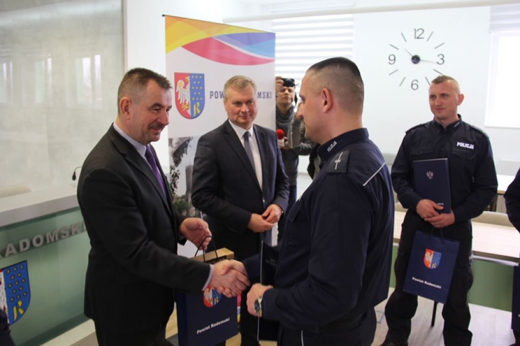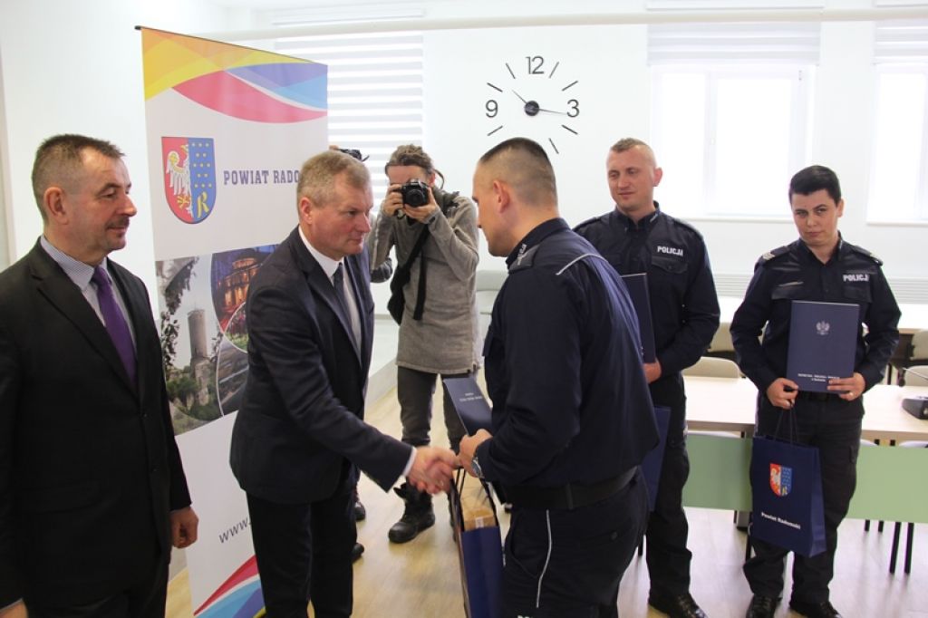 Nagrody ufundowane przez powiat radomski wręczali zwycięzcom i gratulowali starosta Mirosław Ślifirczyk, wicestarosta Leszek Margas oraz komendant Sławomir Rek.
