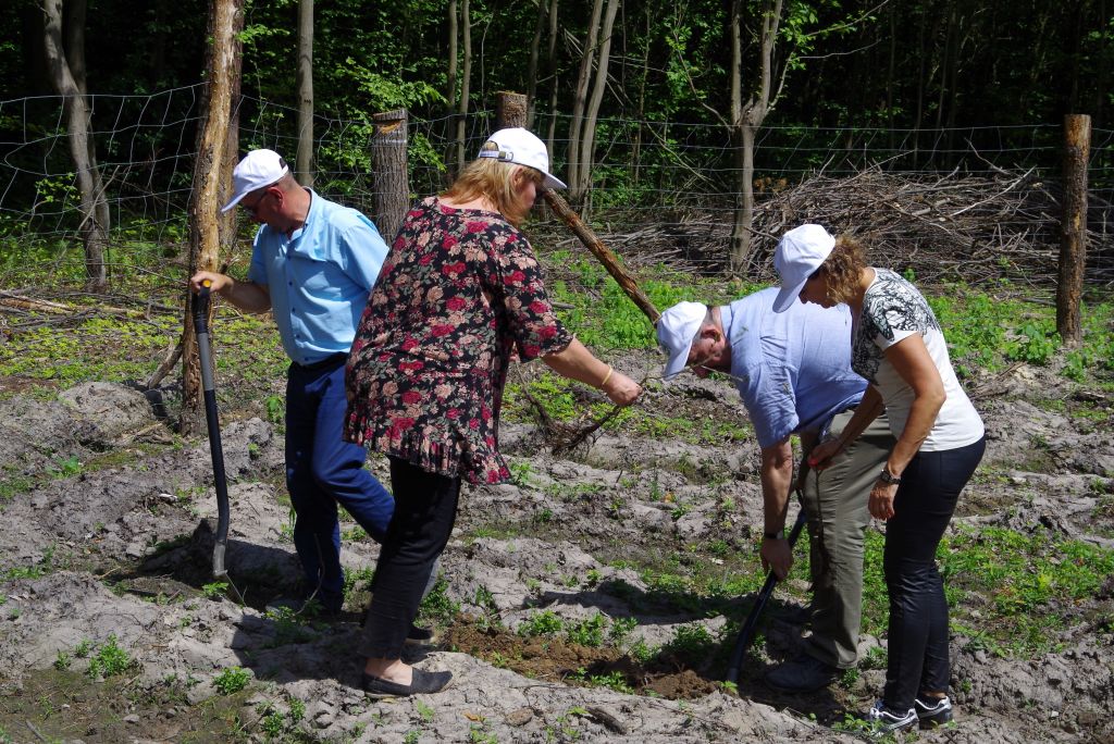 Pracownicy nadleśnictwa przygotowali i ogrodzili 20 arową leśną działkę, zapewnili odpowiedni sprzęt oraz sadzonki, udzielili fachowego instruktażu, przekazali każdemu z uczestników firmowe czapeczki zabezpieczające przed słońcem. Tak wyposażeni w wiedzę i odpowiedni sprzęt, z wielkim zapałem i zaangażowaniem, w pięknej scenerii przy akompaniamencie leśnego ptactwa, piętnastoosobowa ekipa przystąpiła do intensywnej pracy, co z podziwem obserwował szef Nadleśnictwa Marcule pan Tadeusz Misiak. Zaplanowana praca została dość szybko, a co najważniejsze starannie i profesjonalnie, wykonana.