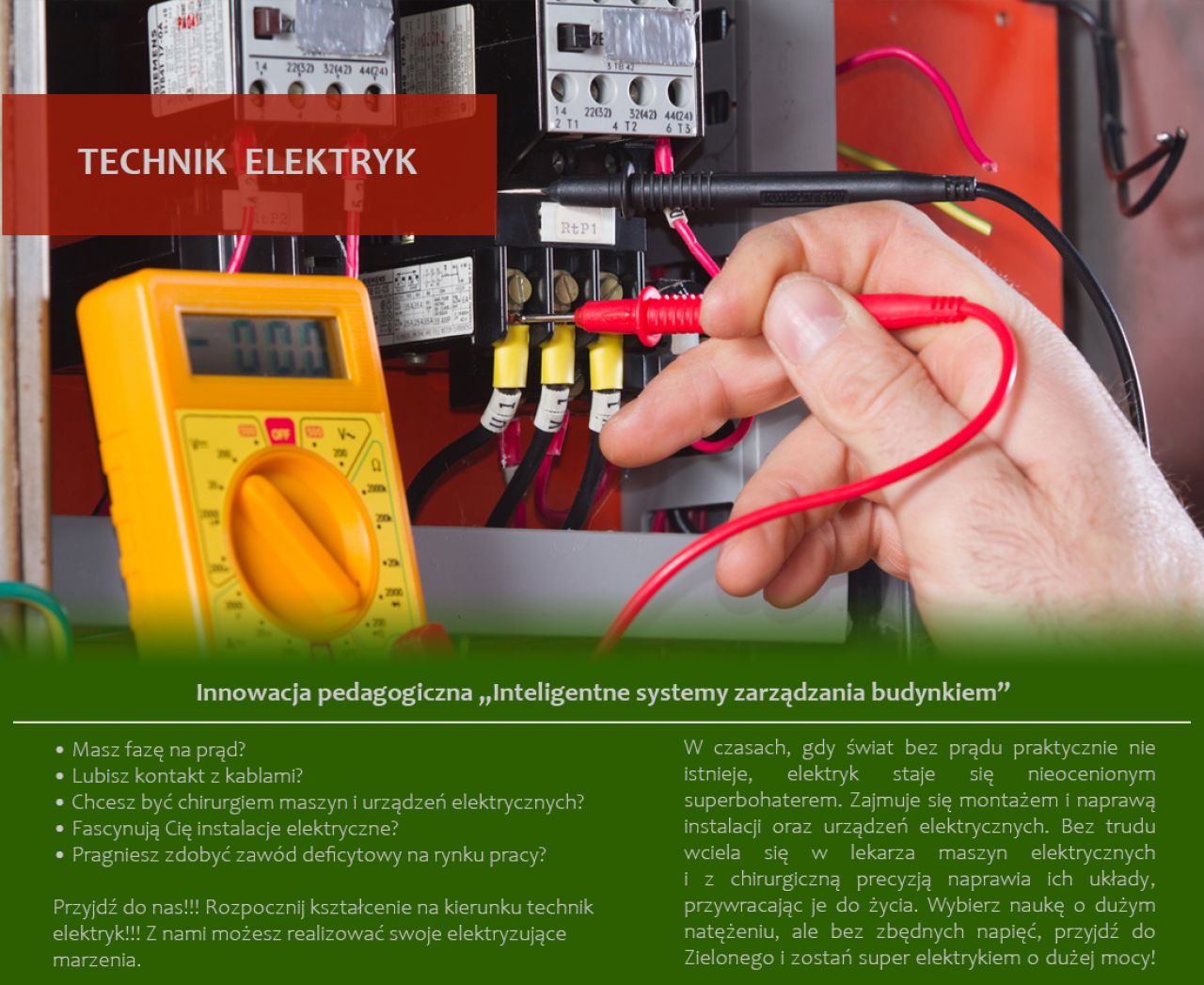 - Technik elektryk z innowacją pedagogiczną ”Inteligentne systemy zarządzania budynkiem”.