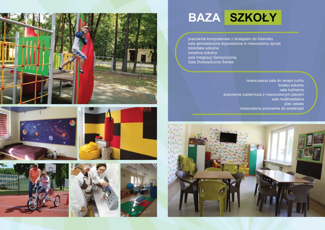 Uczniowie mają do dyspozycji dobrze wyposażone zaplecze rehabilitacyjne, sale terapeutyczne, siłownię napowietrzną oraz plac zabaw. Ponadto objęci są specjalistyczny wsparciem psychologa i pedagoga, jak również całodzienną opieką pielęgniarki szkolnej.