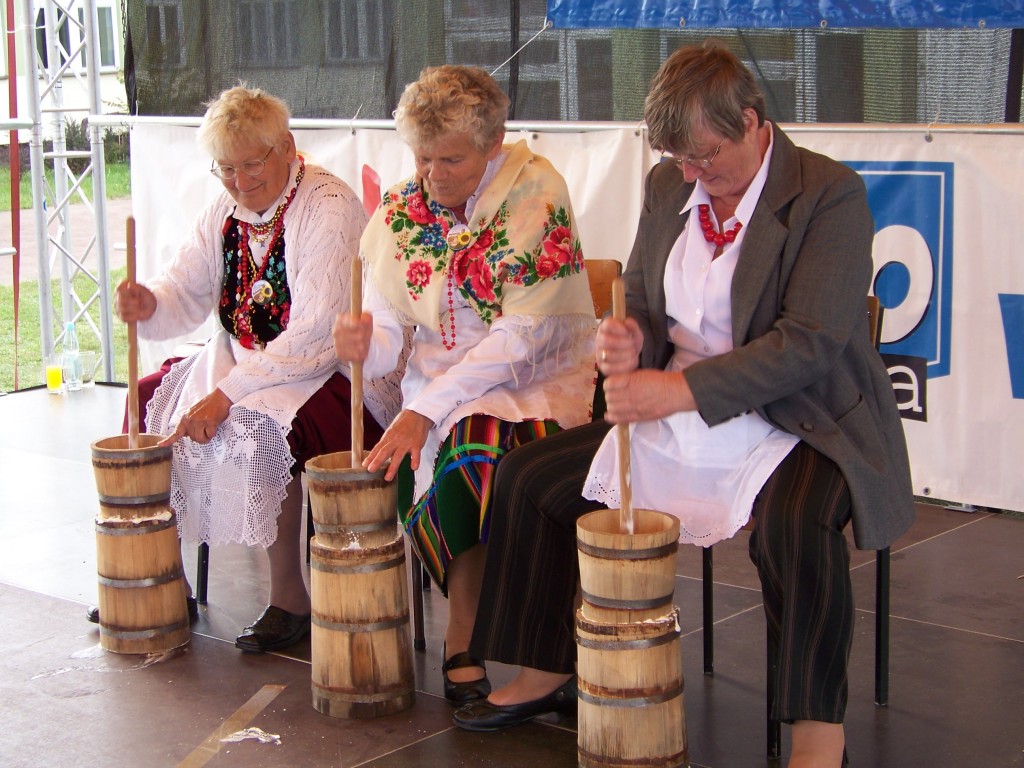 Jak co roku, nie zabrakło konkursów nawiązujących do tradycji wsi. Największym powodzeniem cieszyło się młócenie zboża cepem. W tym zadaniu najlepsza okazała się para Marek Janiec z Jedlińska i Waldemar Filipowski z Wolanowa Wiele osób przyciągnął także widowiskowy konkurs ubijania masła w masielnicy. W zaciętych zmaganiach wzięły udział: Kazimiera Rolnik z gminy Pionki, Halina Tkaczyk z Wolanowa oraz Barbara Drabik z gminy Jedlińsk. Wszystkie panie zajęły pierwsze miejsca. Wcześniej jednak swoje umiejętności w robieniu masła zaprezentowali: starosta, wójt oraz przewodniczący Rady Gminy Zbigniew Kacprzak. Publiczność ze smakiem kosztowała chleb smarowany świeżym wiejskim masłem. Kolejnym, równie ekscytującym konkursem było cięcie drewna piłą, w którym zwyciężyli Ewa Borkowska i Marek Kozłowski z Kowali.