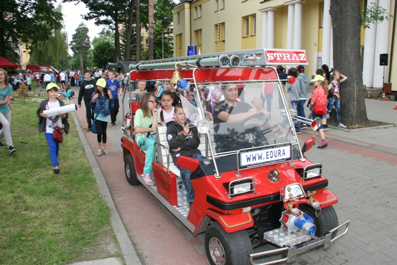 Przedstawiciele służb mundurowych – policjanci, strażacy, inspektorzy Transportu Drogowego, służba więzienna, patrol saperski z Dęblina i leśnicy – zapewnili uczniom mnóstwo atrakcji. Przez kilka godzin dzieciaki mogły m. in. do woli oglądać oraz siadać za kierownicą policyjnych radiowozów i motocykli, wozów strażackich jak również zwiedzić samochód – policyjną więźniarkę, którym konwojowani są zatrzymani. Dzieci miały możliwość przymierzania hełmów, kamizelek i innych części ekwipunku. Dużym zainteresowaniem cieszyło się także zbieranie odcisków palców, jazda symulatorem motocykla, przejażdżki policyjnymi i strażackimi meleksami. Wśród atrakcji była również ścianka wspinaczkowa i liczne konkursy wymagające dobrej wiedzy i sprawności fizycznej. Zwycięzcom upominki wręczali i gratulowali m.in. starosta Mirosław Ślifirczyk, burmistrz Marek Janeczek oraz Komendant Miejski Policji w Radomiu insp. Karol Szwalbe.