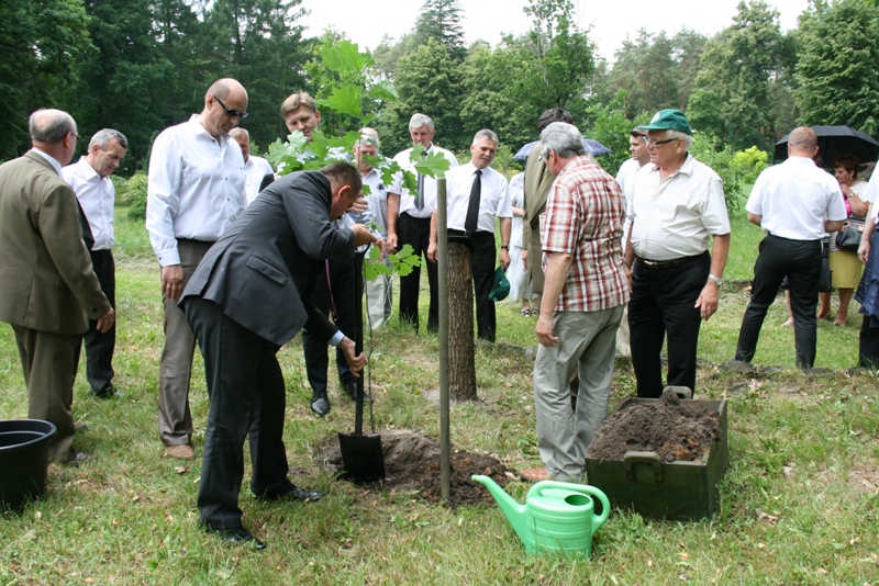 Niezwykle uroczystym momentem spotkania było posadzenie pamiatkowego dębu przez radnych na terenie arboretum. Informuje o tym fakcie tekst na specjalnej tabliczce, pod którym podpisali się przewodniczący Rady Powiatu Tadeusz Osiński oraz starosta radomski.