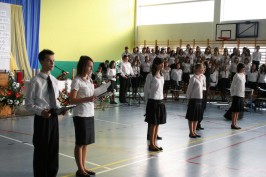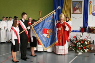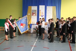 Po zakończeniu mszy świętej historię placówki przedstawiła pani Danuta Łozińska, po czym uroczyście przekazano nowy sztandar szkole. Dyrektor gimnazjum Tomasz Jarzembiński zapewniał, że sztandar to symbol wartości, które są i będą fundamentem pracy wychowawczej szkoły. Uczniowie zaś ślubowali, że "będą służyć Ojczyźnie rzetelną nauką, pracą i wzorowym zachowaniem, dbać o dobre imię szkoły, godnie ją reprezentować oraz okazywać szacunek rodzicom, nauczycielom i kolegom".