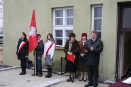 |  | fot.2 Powitanie gości przez wójta Adama Jabłońskiego. | fot.3 Wicestarosta Krzysztof Górak wręcza dyrektor szkoły Jolancie Ziębie upominki. |  |  | fot.4 Wpisu do aktu dokonuje wicewojewoda Dariusz Piątek. Od lewej dyrektor delegatury w Radomiu WFOŚiGW Bogumił Ferensztajn. | fot.5 Umieszczenie aktu erekcyjnego w metalowej tubie. |  |  | fot.6 Wmurowanie dokumentu. | fot.7 Występy artystyczne uczniów PSP w Małęczynie |