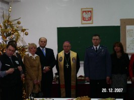 W spotkaniu uczestniczyli m.in.: Jego Ekscelencja Ks. Biskup Ordynariusz Zygmunt Zimowski (fot.2 trzeci z prawej), prezydent Radomia Andrzej Kosztowniak (fot. 2 czwarty z prawej), przewodniczący Rady Powiatu Edward Krok, wicestarosta radomski Krzysztof Górak (fot.3 drugi z lewej), komendant Miejski Policji Andrzej Chaniecki (fot. 1 na środku) oraz z-ca komendanta Wojewódzkiego Policji z siedzibą w Radomiu nadkom. Rafał Batkowski (fot. 2 drugi z prawej).