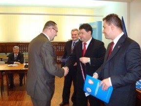 Certyfikaty oraz legitymacje potwierdzające ukończenie pilotażowego programu kształtowania zachowań ratowniczych otrzymało, z rąk wicewojewody Dariusza Piątka, dyrektora Wojewódzkiej Stacji Pogotowia Ratunkowego i Transportu Sanitarnego MEDITRANS SPZOZ Artura Kameckiego oraz starosty radomskiego Tadeusza Osińskiego, 20 pracowników Starostwa Powiatowego.